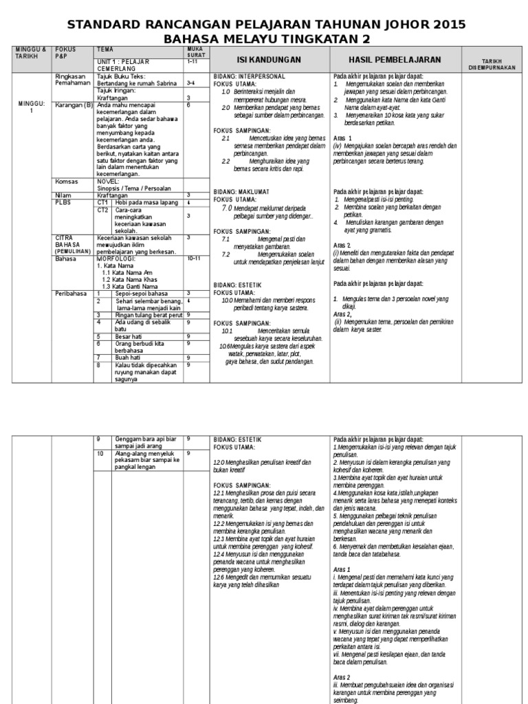 Download Rpt Bahasa Melayu Tingkatan 2 Terhebat Rancangan Pengajaran Tahunan Bahasa Melayu Penggal 1 Stpm Baharu Skoloh